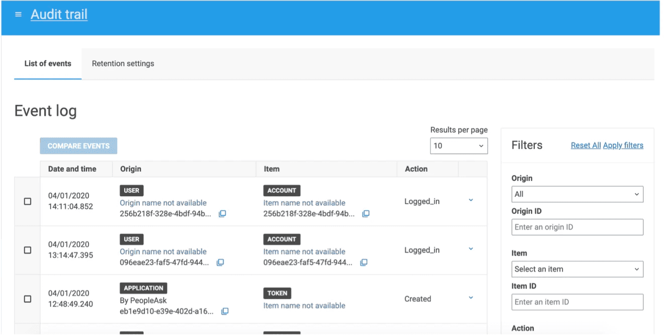 Standardized attribute order: Who → What → When → Item"See changes" link surfaces payload diffs at a glanceExport filtered results for sharing with customers